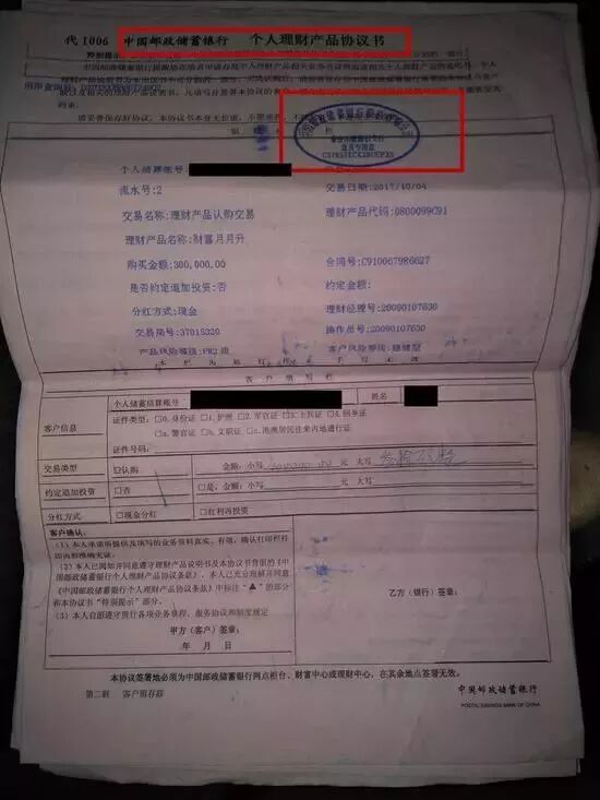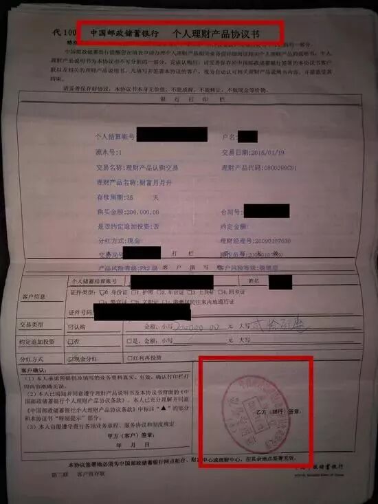 目前,王先生已经将理财协议等所有相关资料复印件交于邮储银行和当地银监局,等候调查结果。