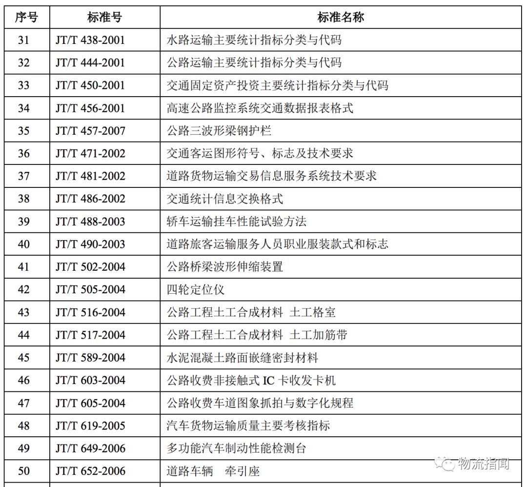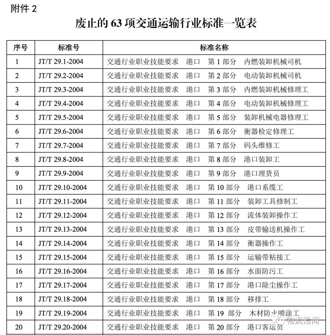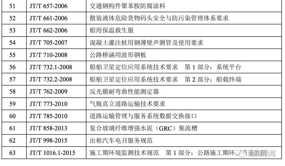 此外,交通部还废除了63项交通运输行业标准,具体如下: